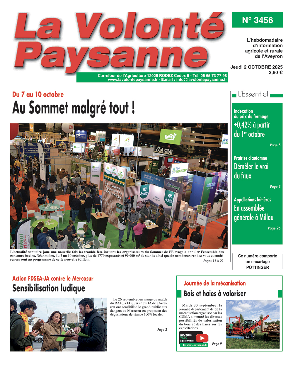 S’abonner au journalAvec la version numérique, lisez La Volonté Paysanne sur votre ordinateur, votre tablette ou votre portable, tous les jeudis à partir de 14 h !
