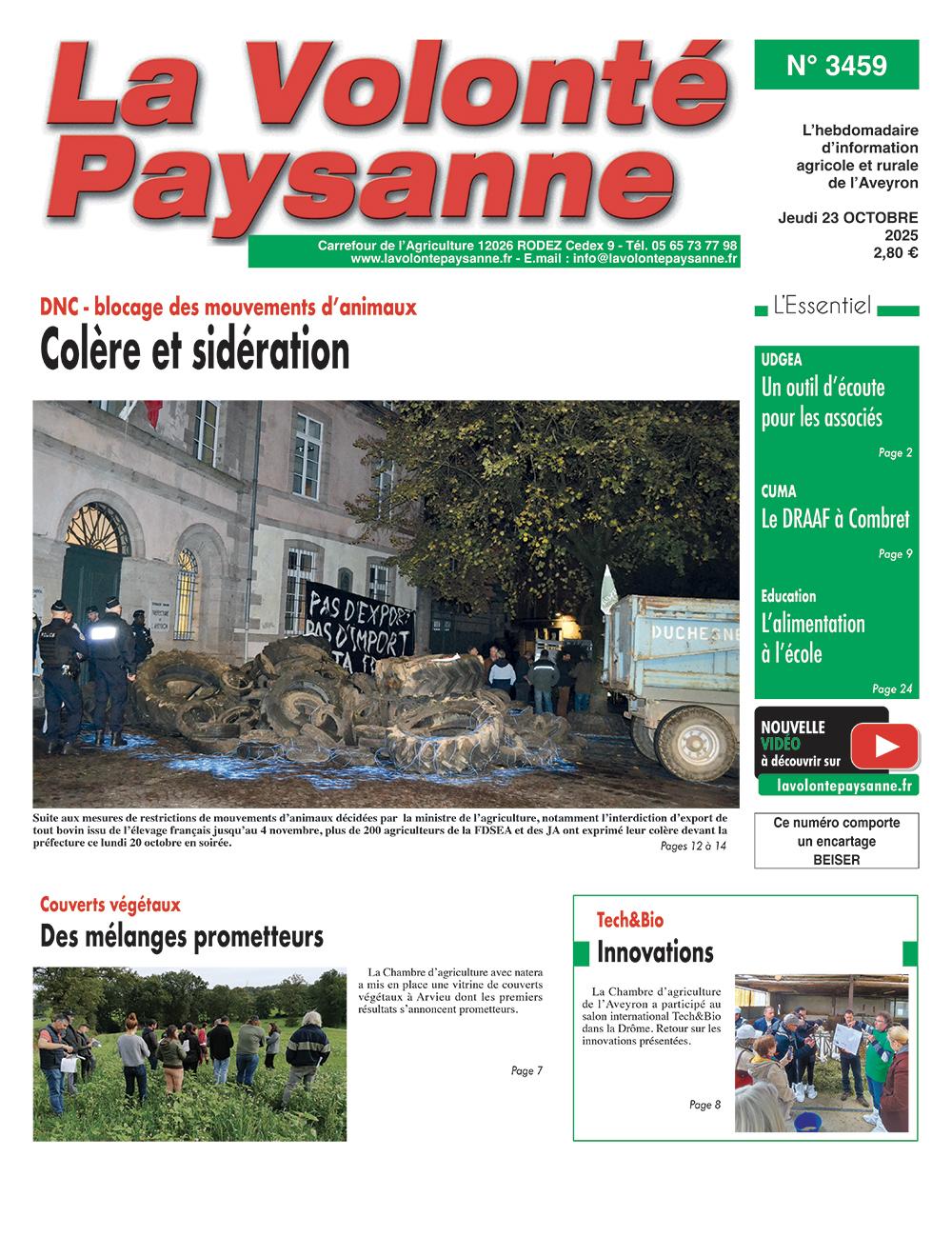 S’abonner au journalAvec la version numérique, lisez La Volonté Paysanne sur votre ordinateur, votre tablette ou votre portable, tous les jeudis à partir de 14 h !