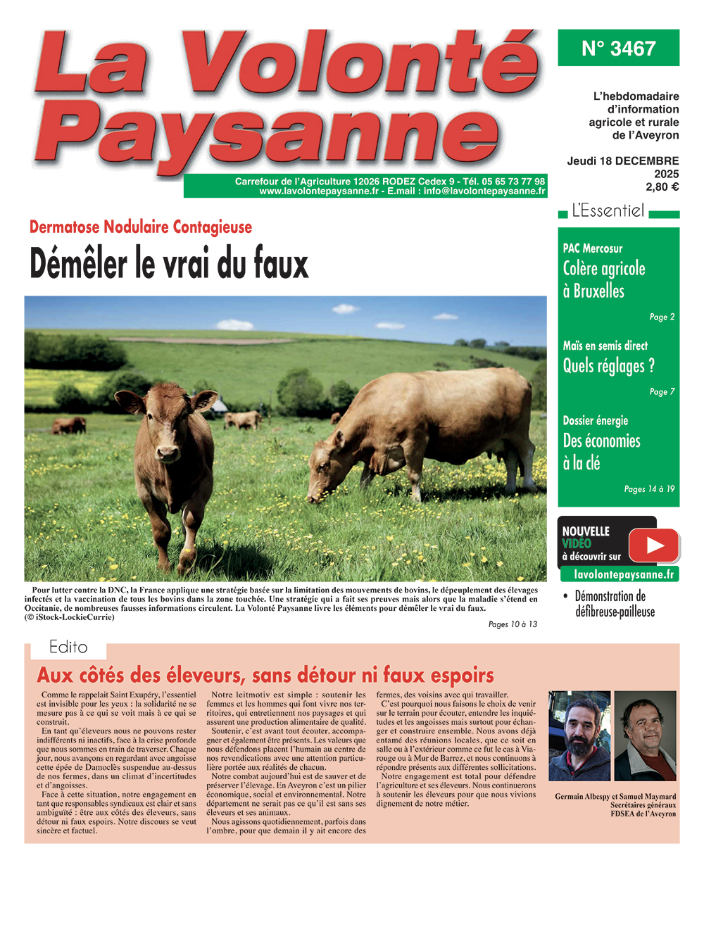 S’abonner au journalAvec la version numérique, lisez La Volonté Paysanne sur votre ordinateur, votre tablette ou votre portable, tous les jeudis à partir de 14 h !