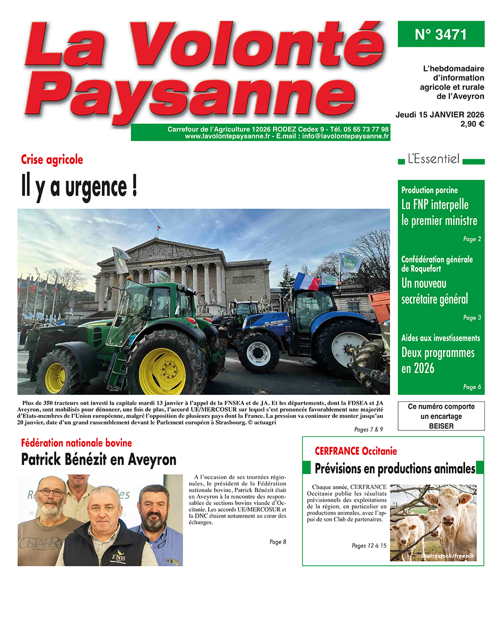 S’abonner au journalAvec la version numérique, lisez La Volonté Paysanne sur votre ordinateur, votre tablette ou votre portable, tous les jeudis à partir de 14 h !