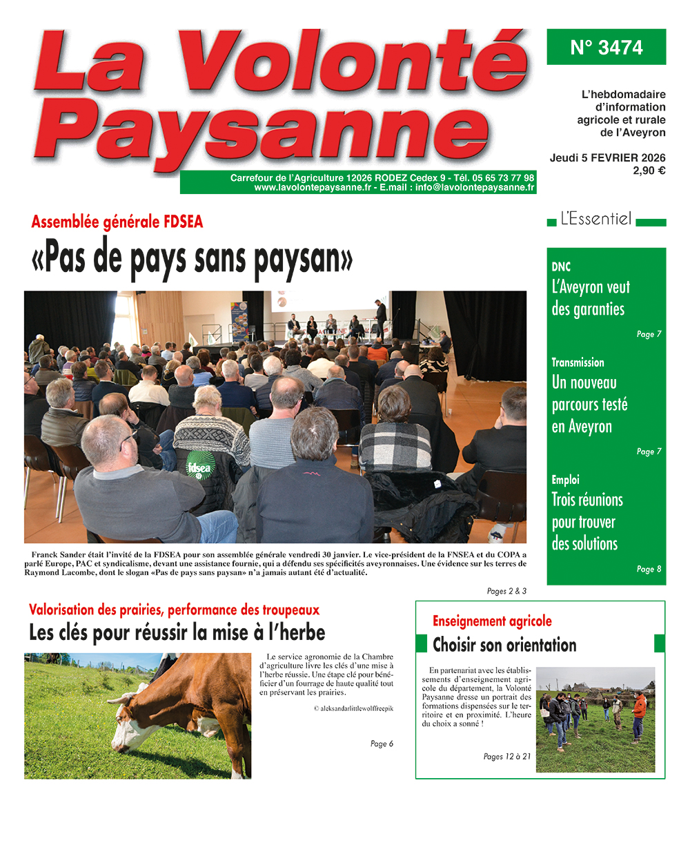 S’abonner au journalAvec la version numérique, lisez La Volonté Paysanne sur votre ordinateur, votre tablette ou votre portable, tous les jeudis à partir de 14 h !