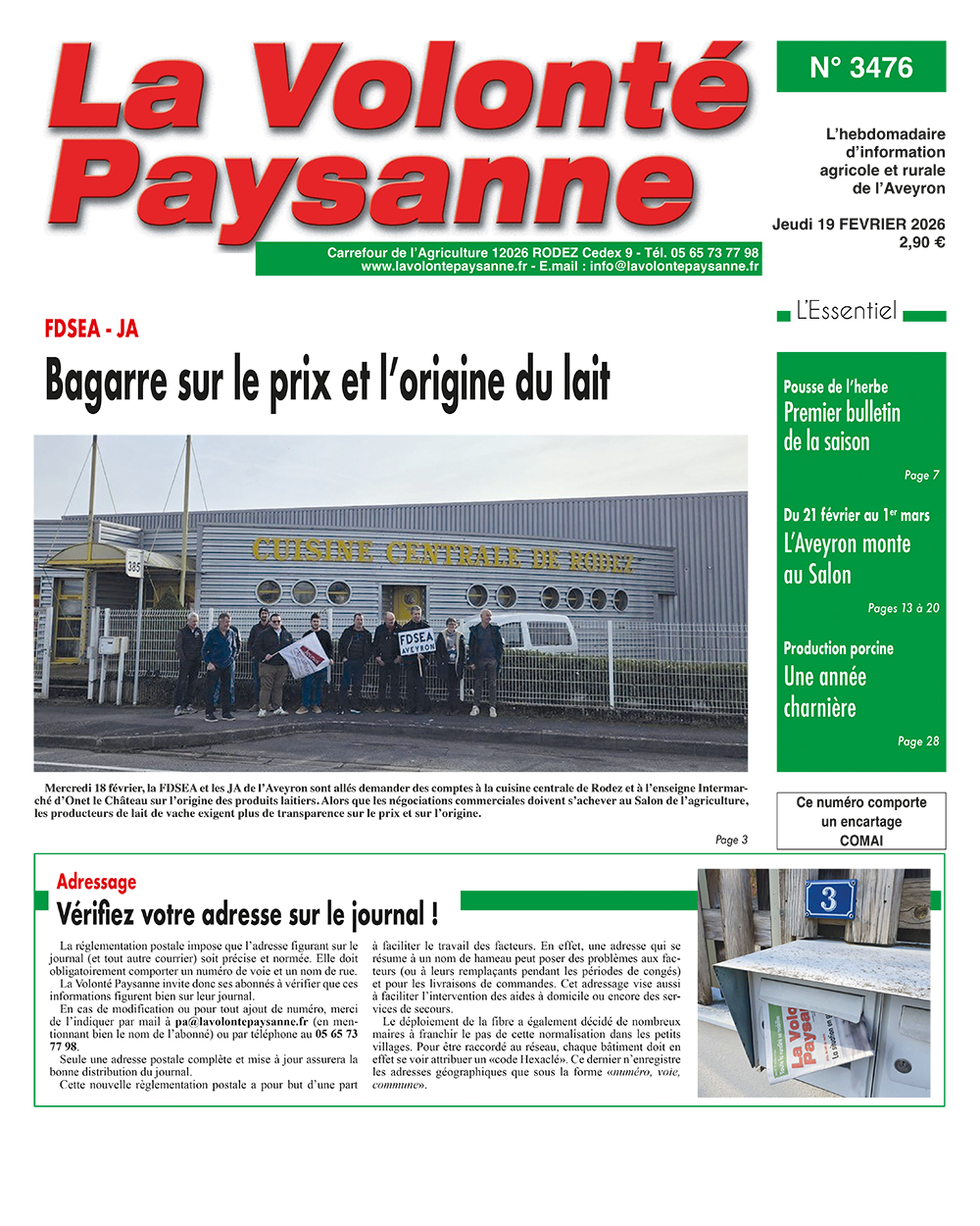 S’abonner au journalAvec la version numérique, lisez La Volonté Paysanne sur votre ordinateur, votre tablette ou votre portable, tous les jeudis à partir de 14 h !
