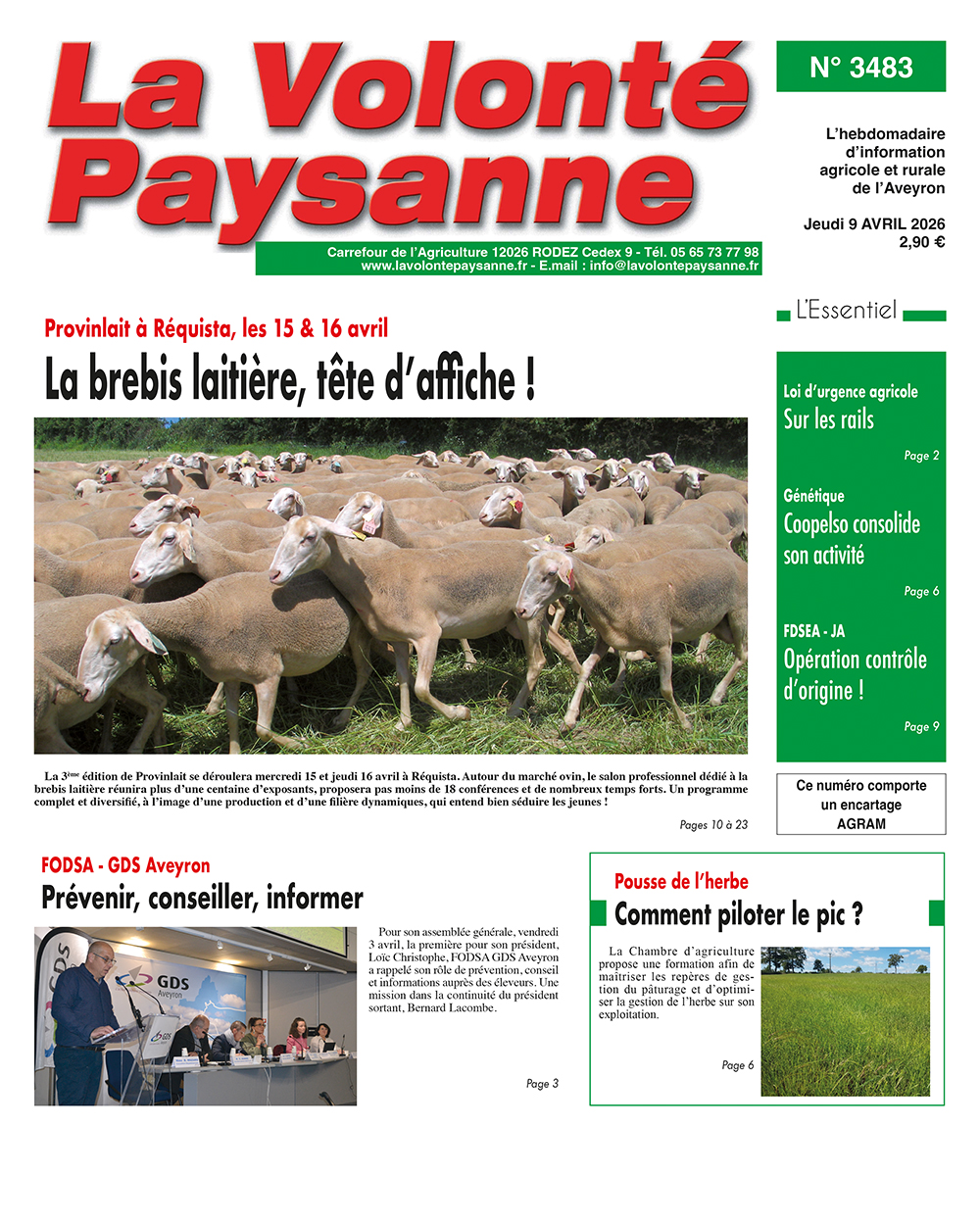 S’abonner au journalAvec la version numérique, lisez La Volonté Paysanne sur votre ordinateur, votre tablette ou votre portable, tous les jeudis à partir de 14 h !