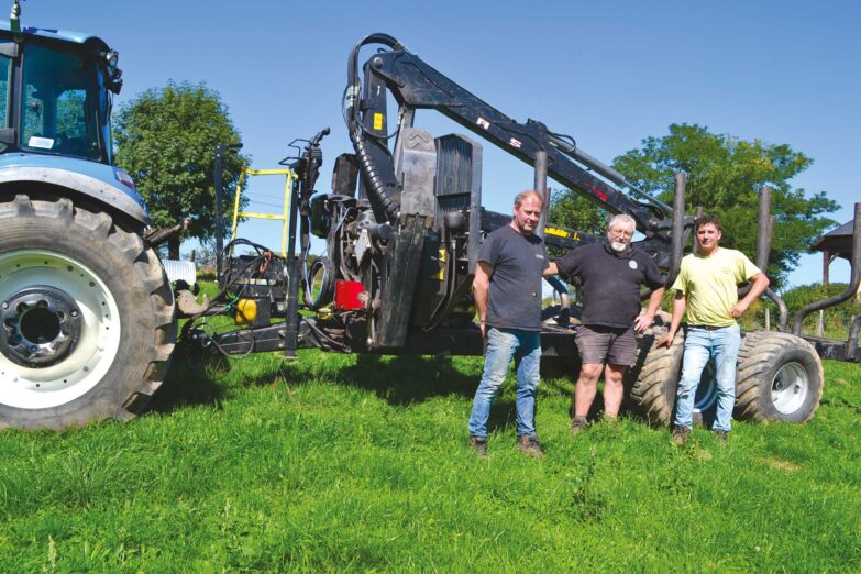 «Les trois quarts du pays ici sont couverts par des surfaces boisées, tous les agriculteurs quasiment, exploitent un minimum pour faire du bois de chauffage, pour eux, leur entourage et parfois un peu de vente. Et ils sont de plus en plus nombreux à utiliser des plaquettes bois en litières. D’où l’intérêt de s’équiper d’une remorque qui nous facilite la tâche, nous simplifie le travail et nous fait gagner du temps, sans investir à outrance !», poursuit le responsable du matériel. Florian et Laurent du GAEC Guichard apprécient de pouvoir travailler en sécurité : «Contrairement à la précédente, cette remorque est très sûre, on peut la charger sans craindre le renversement, jusqu’à 11 tonnes de portée. Modulable elle est longue de 4m et peut être un peu rallongée d’1,5 m. Et la grue, dotée d’un grappin à 360 degrés, peut monter jusqu’à 7m de haut et porter 700 kg. Nous avons ainsi un bon rendement de chantier». Ils citent aussi la maniabilité dans la conduite de cet attelage : «Grâce à son timon hydraulique, on prend sans souci des virages en épingle. On part du principe que si le tracteur passe, la remorque suit !», témoignent les agriculteurs.