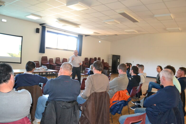 Chaque année, l’IRVA emmenée par Pierre Cabrit, vient à la rencontre des éleveurs de Veau d’Aveyron et du Ségala lors de ses réunions d’hiver, comme ici en 2025 à Cassagnes Bégonhès.
