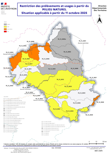 Les mesures figurent dans l’arrêté préfectoral de restriction temporaire, consultable dans toutes les mairies de l’Aveyron ainsi que sur https://www.aveyron.gouv.fr/Actions-de-l-Etat/Environnement/Gestion-de-l-eau/Secheresse