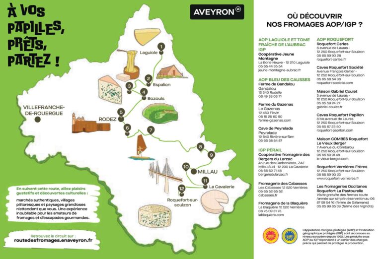 2025 est bien l’année du fromage en Aveyron ! Alors que la plus ancienne appellation fromagère, le Roquefort, fête ses 100 ans, que le Pérail a décroché son IGP, le département officialise la mise en place d’une Route des Fromages. 220 km pour découvrir les appellations AOP/IGP de l’Aveyron et surtout les déguster !
